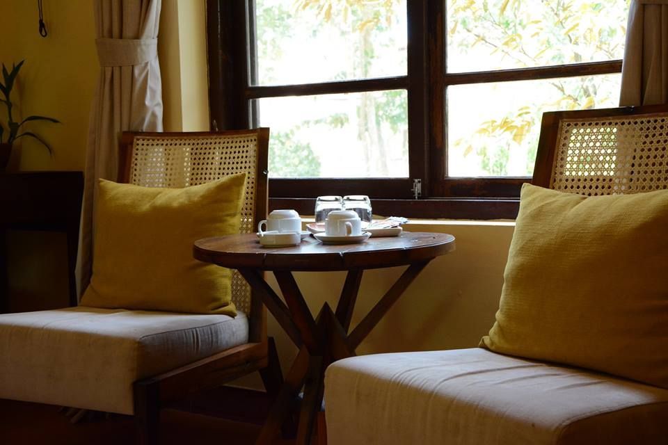 Hệ thống 85 phòng nghỉ được chia thành 2 khu : Xóm Nhà Cổ và Xóm Lạc Việt , phòng biệt thự . Các phòng nghỉ đều hướng ra hồ Suối Bơn và khu vườn xanh mướt và đều có chung một phong cách : bên ngoài mộc mạc đơn sơ , bên trong có đầy đủ trang thiết bị hiện đại